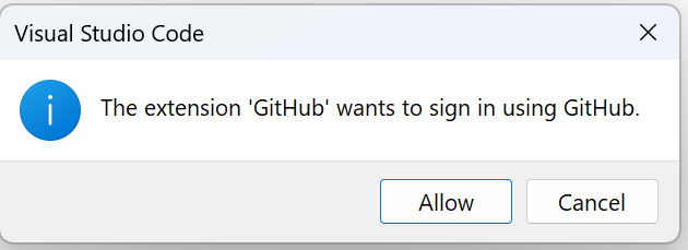 If you have never signed in with Git before you will be asked to do so. Click Allow.
