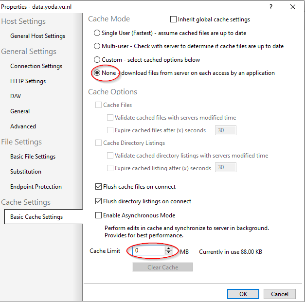 - Set Cache Mode to None and Cache Limit to 0.